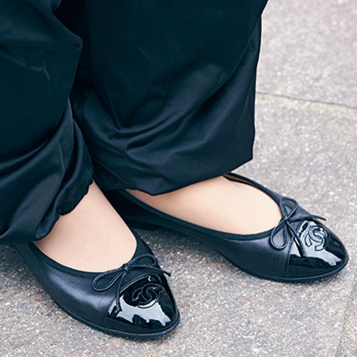 ブラックでも堅苦しくならずに優しい印象で履ける! 「普段、洋服も小物も黒は全く持っていなかったのですが、このブラックは身に着けたい!と思い購入に至りました。バレエシューズなのでフラットで子連れ時でも履けるのが嬉しい」 ※私物につきシャネル ブティックへのお問い合わせはお控えください。