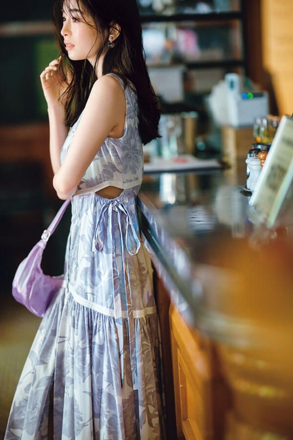 がっつり背中見せしたドレスにサイドがぱかっと開いたワンピース……女子会ならそんな思い切った肌見せも解禁! ただし、その他のアイテムで清潔感や品格はちゃんと死守して。夏の鉄板、総花柄のワンピースにカッティングの肌見せで、おしゃれな変化をつけて。モード感が出すぎないように、柔らかな配色&リボンディテールで甘さはしっかりキープ♡