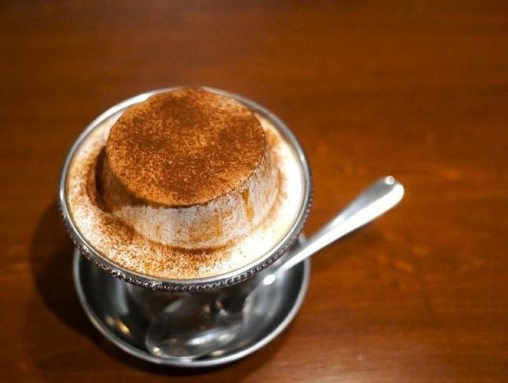 固めのプリンに、生クリームとカカオがたっぷりかかっていて、ティラミス風の味わい。