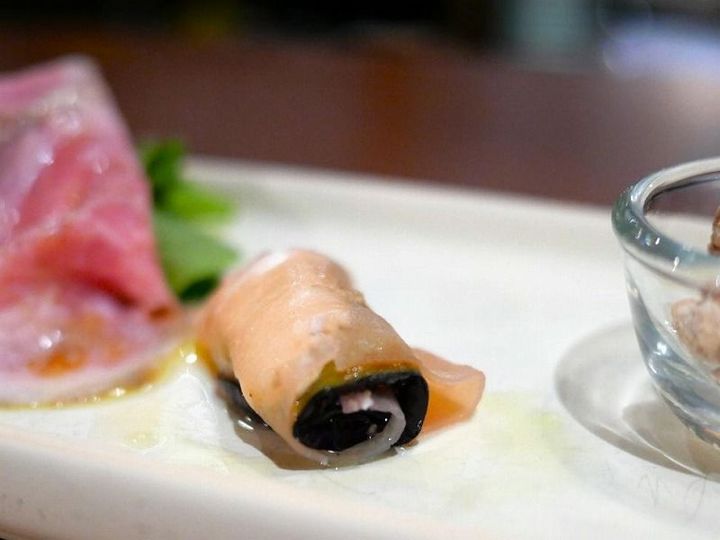手抜きしていないと言えば、こちら。ぱっと見、海苔を生ハムで巻いているのかと思ったのですが、食べたら記憶のある味わいだけど、何かが思い出せない・・・