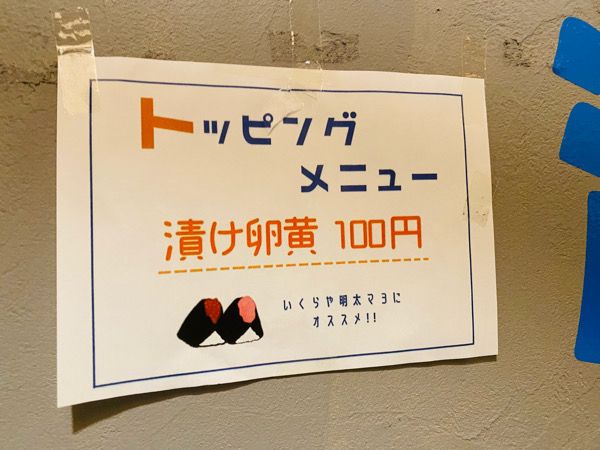 漬け黄卵のトッピングメニューも!いくらや明太マヨにおすすめとのこと。