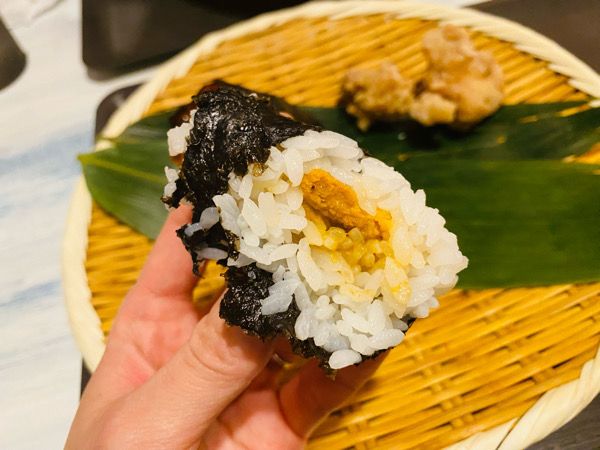 一口目で具材全部食べちゃったな〜と思ったのですが、食べすすめていると中にもちゃんと入ってました。 お米はふんわりと空気を含みながら握られています。これが美味しさの秘訣なんでしょうね。