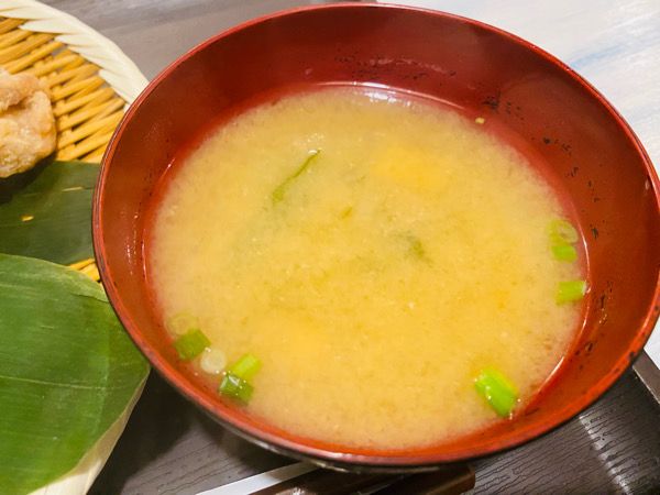 ワカメと玉ねぎのシンプルなお味噌汁がしみじみうまい。