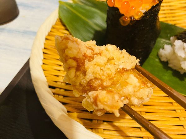 そしてこの「おふくろの唐揚げ」なんですが、あまりの美味しさに唸りました。 サックサクの衣と旨味が溢れるジューシーな唐揚げ。まさにおむすびの名脇役といった感じ!! お世辞抜きで本当に美味しかったです。
