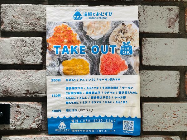ちなみにテイクアウトもやってます。 テイクアウトはお値段お安め。その代わりおむすびのサイズが小さめみたいです。