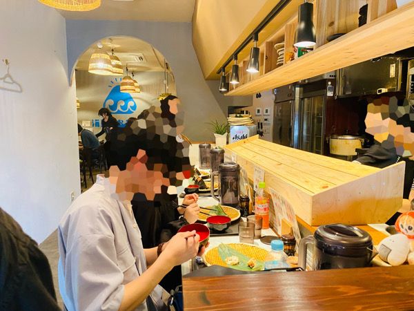 約1時間待って入店! 店内入り口は低くなっているので頭をぶつけないように注意です。 入ってすぐカウンター席が5つと、奥にテーブル席が4つありました。 「お待たせしました!いらっしゃいませ〜!」と明るい良い声で迎えられて、接客も気持ちよかったです。
