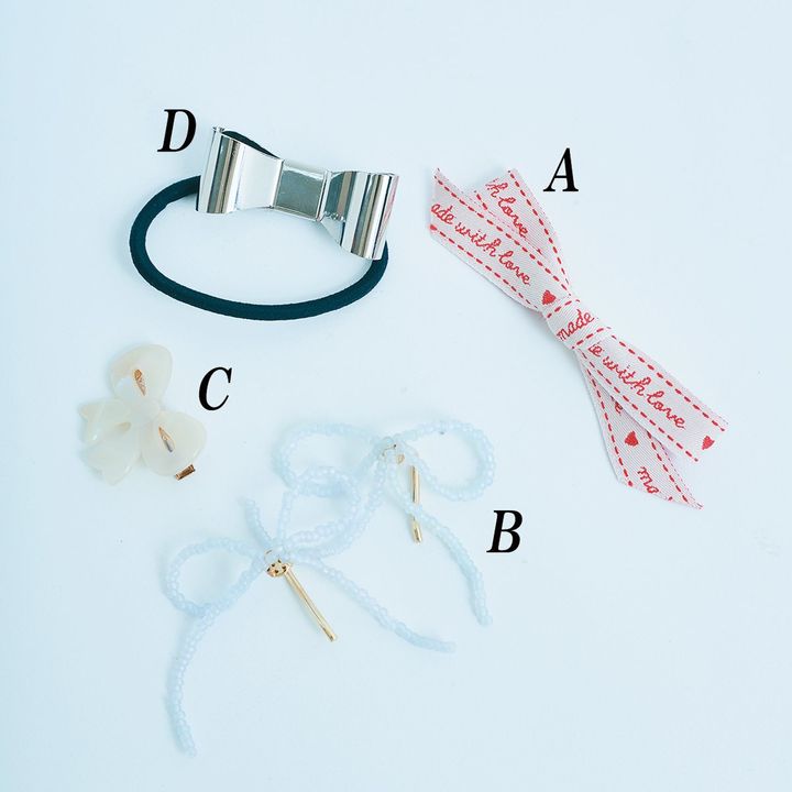 B. 結び目に挿すだけで今っぽ髪になれるマットなビーズリボン。