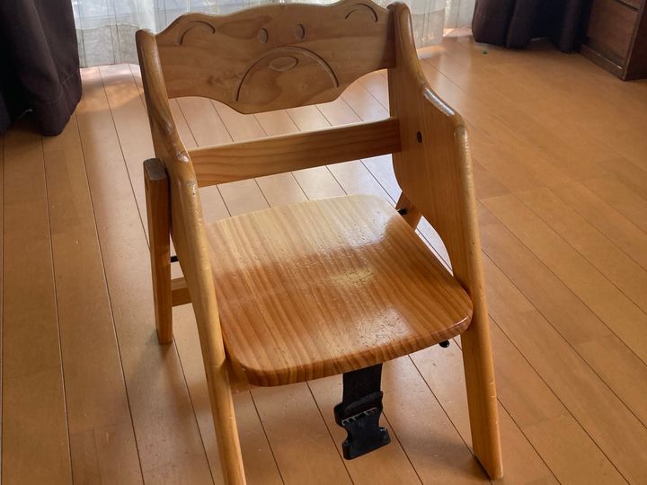 それは何かというと、くまちゃんのイスでした。長男が離乳食を食べ始めた頃に購入したもので、10年前から使い始め、次男も使い、三男も使った丈夫なイス。
