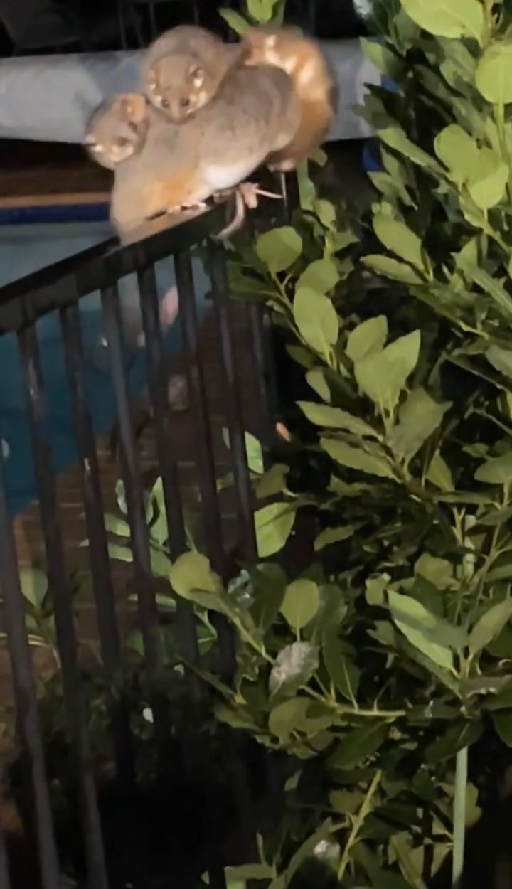 フェンスの上にいたポッサムの親子。 その様子は、こちらの動画からご覧いただけます。