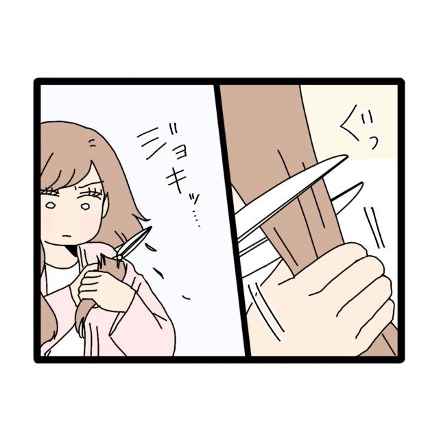 姫はハサミを取り出すと、長かった髪を自分でバッサリと切り落としました。