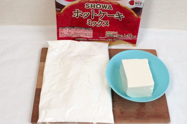 豆腐は水切りせずに使います。豆腐の水分を利用してホットケーキミックスをひとまとめにしますよ。