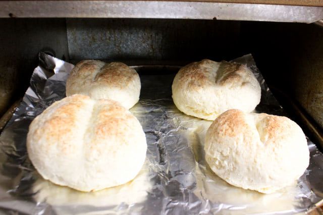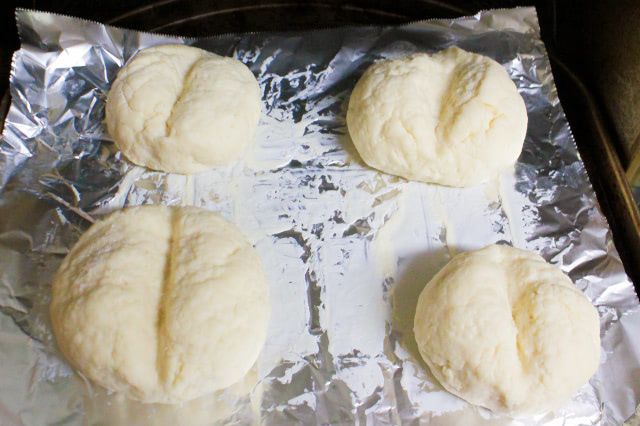 今回は4個に仕上げましたが、少し大きめの2つが約80g、少し小さめの2つが約65gでした。一般的なバターロールくらいのサイズ感ですが、ずっしりと重い!