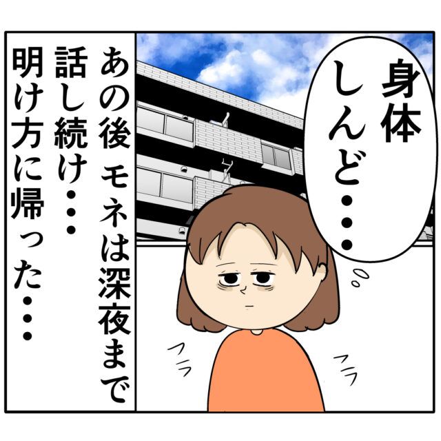 相談に乗れない、と伝えても状況は変わらず、相変わらず訪ねてくるモネさん・・
