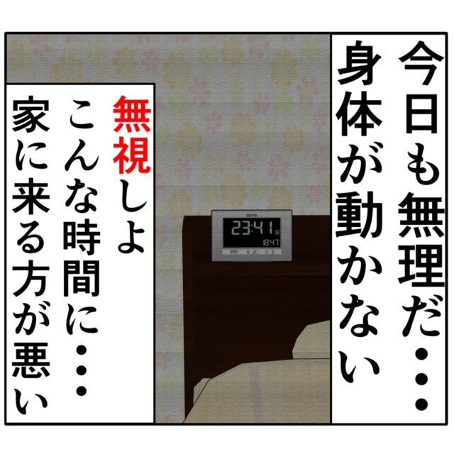 (今日も無理だ・・身体が動かない。無視しよ。こんな時間に・・家に来る方が悪い)