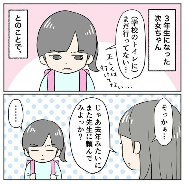 当時の担任に相談したまりまりさんは、アドバイスを受けながら次女を見守り、次女は無事トイレに行けるようになりました。