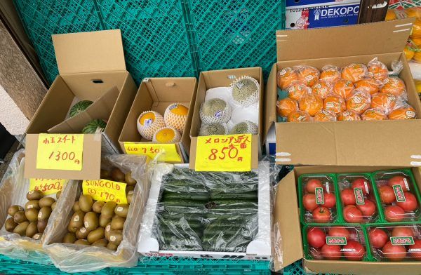 旬の野菜や季節のフルーツが店先にずらりと並んでいます。