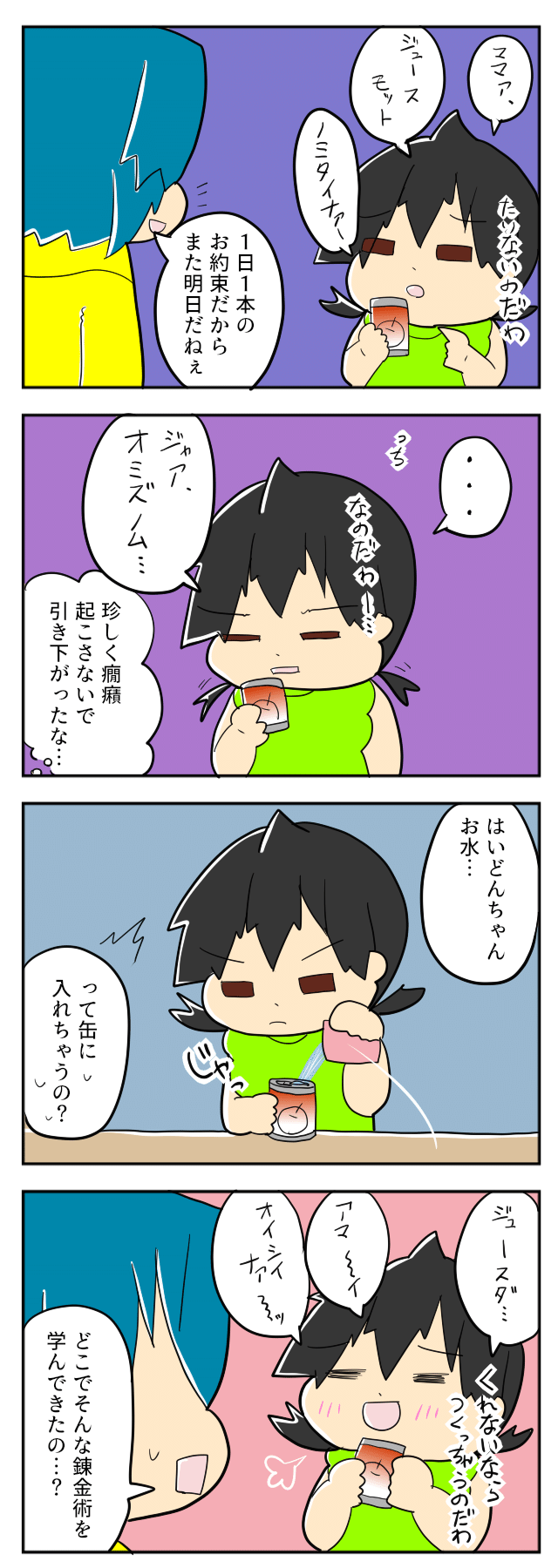 ジュースをもっと飲みたい!5歳娘が考えついた錬金術にビックリ!|mochikoの育児マンガ