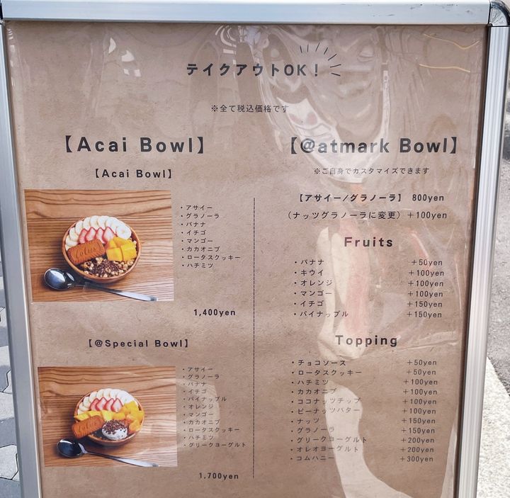 店内はテーブル席カウンター席があり、今回は外のテラス席でアサイーボウルを頂きました!