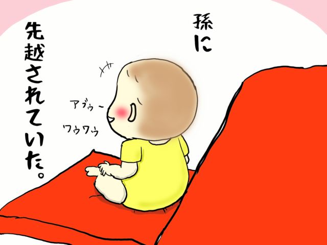 2. 【孫との戯れ3】あ、先越されてた。私の座椅子に座っていたのはドヤ顔の可愛い先客|てる子の育児日記