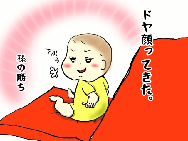 【孫との戯れ3】あ、先越されてた。私の座椅子に座っていたのはドヤ顔の可愛い先客|てる子の育児日記