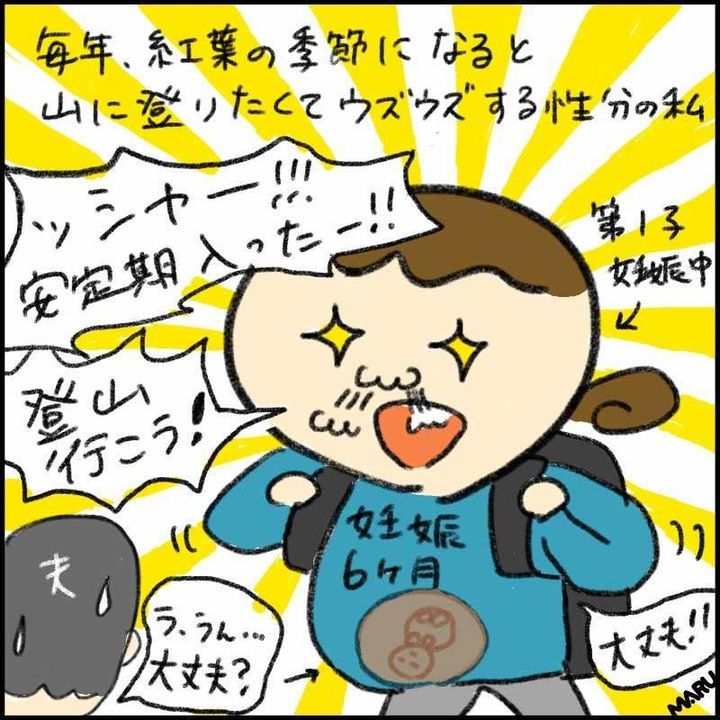 妊娠6ヶ月。つわりも明けて、足腰の筋肉をつけなきゃ!とやる気に満ちあふれていた、札幌在住のイラストレーター・まるいみさきさんは、登山に出かけました。