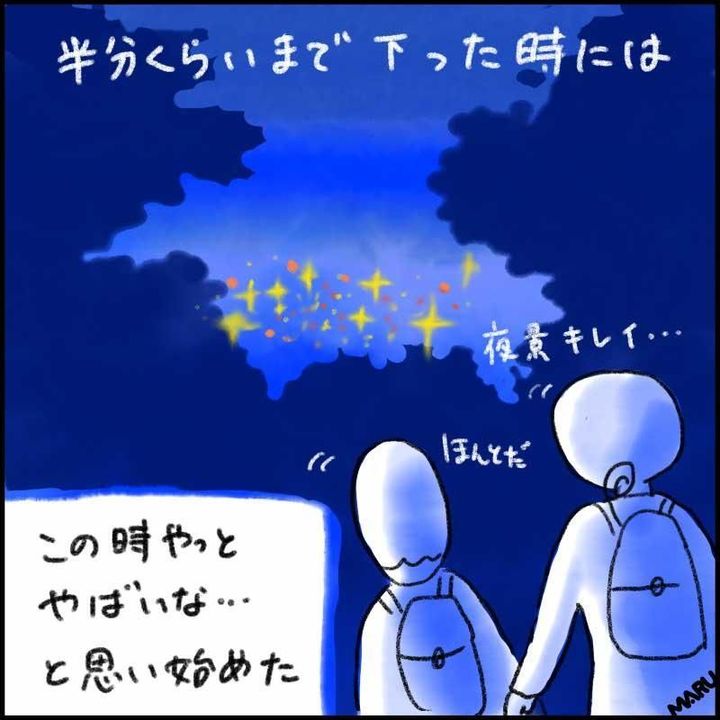 半分くらいまで下ったときには、きれいな夜景が…。