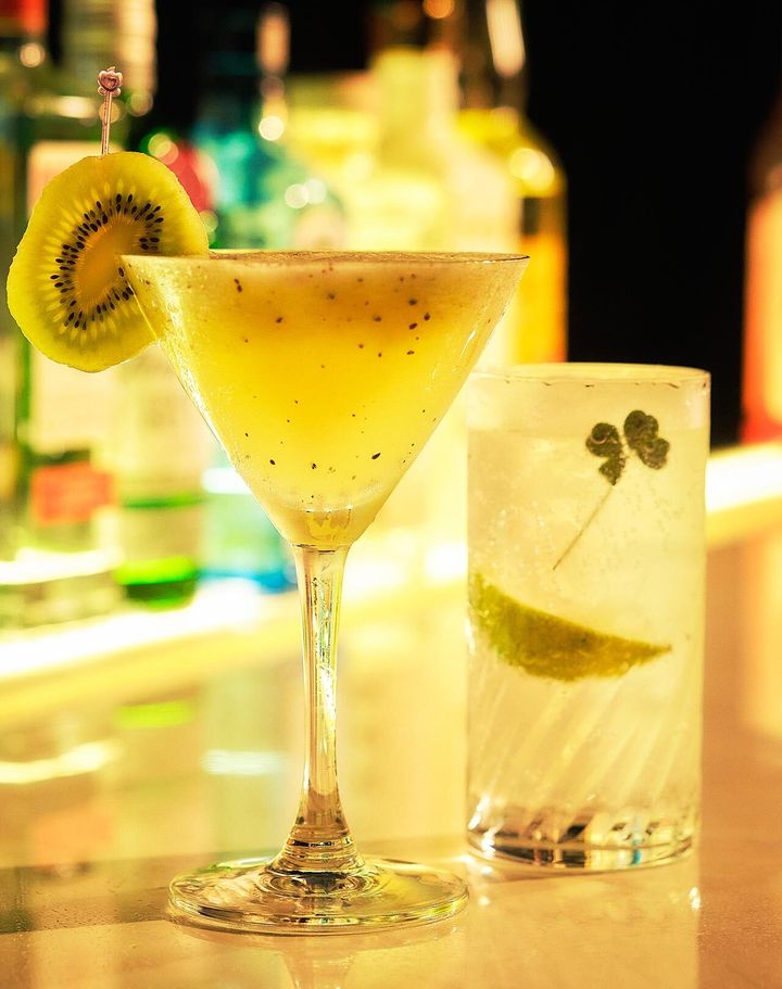 左:「フローズンキウイ」(¥1,200) 右:「四つ葉ジントニック」(¥1,000)