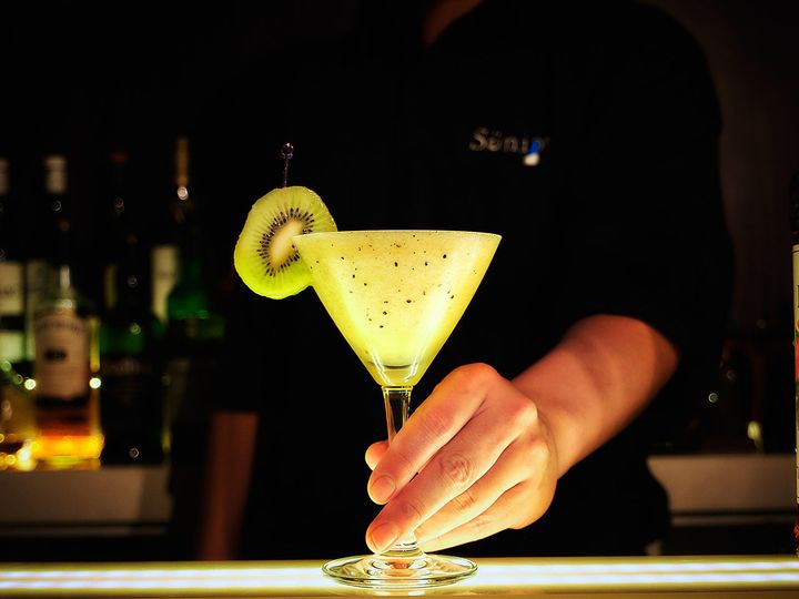 フルーツのカクテルは毎月旬を取り入れ変化する。初夏におすすめのカクテルは、冷たく爽やかな「フローズンキウイ」(¥1,200)。