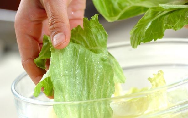 レタスは金属に触れると酸化が進むので、包丁は使わずに手でちぎることが重要です。