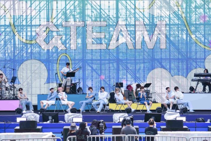 セーラー服や青を基調とした爽やかな衣装で登場した&TEAMは、先月リリースされた「五月雨(Samidare(KOR ver.))」や、特徴的なタイトルでXにトレンド入りした「チンチャおかしい(Really Crazy)」など、全4曲を披露しました。