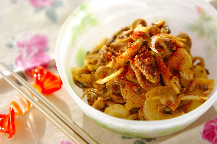 青魚が苦手な方におすすめなのが、カレー風味のマリネ。スパイシーな香りでオイルサーディンのくさみが気にならず、パクパク食べられますよ。玉ネギやシメジと和えたら、少し置いて味をなじませてからいただきましょう。