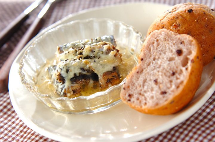 オイルサーディンにピザ用チーズをのせて、トースターでこんがり焼く副菜です。オイルサーディンによく合うハーブをトッピングするのがポイント。ハーブの香りが全体に移り、上品な味わいに仕上がりますよ。