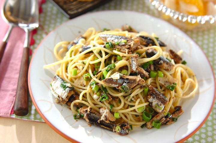 細ネギを使ったパスタは香りが良いのが魅力。オイルサーディンとも相性が良いので、たっぷり入れるのがおすすめです。オイルサーディンはフライパンの中で崩すため、下準備不要。白ワインと一緒にいかがでしょうか?