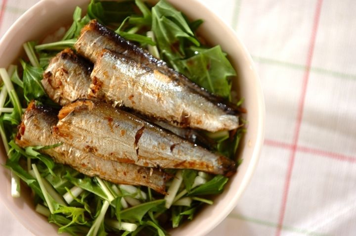 シャキシャキの水菜と、香ばしいオイルサーディンが相性抜群の丼です。オイルサーディンはフライパンが冷たいときに油と一緒に入れ、中火で温めると良いですよ。オイルサーディンに塩気があるため、しょうゆは控えめで十分です。