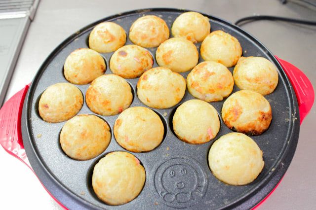 上沼さん絶賛の3種の具材を入れた、「えみちゃん流たこ焼き」が完成しました♪見た目は当然ながら、一般的なたこ焼きに仕上がります。
