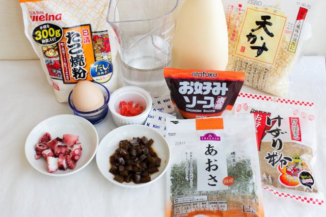 たこ焼きの生地は、今回使ったたこ焼き粉の袋に記載されている分量で作りました。