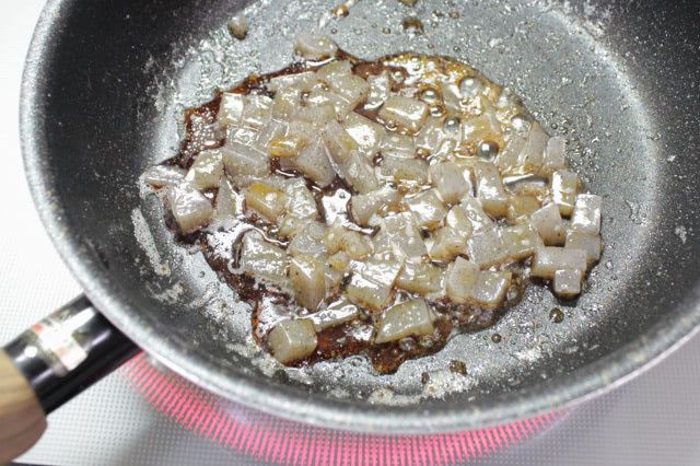 動画では詳しい分量紹介がなかったため、市販のたこ焼き粉の袋に書かれたレシピを参考に作ってみます。具材にこんにゃくの煎り煮を使いますが、上沼さんは「刻みこんにゃくをしょうゆと砂糖で煎りつけたもの」と紹介していました。