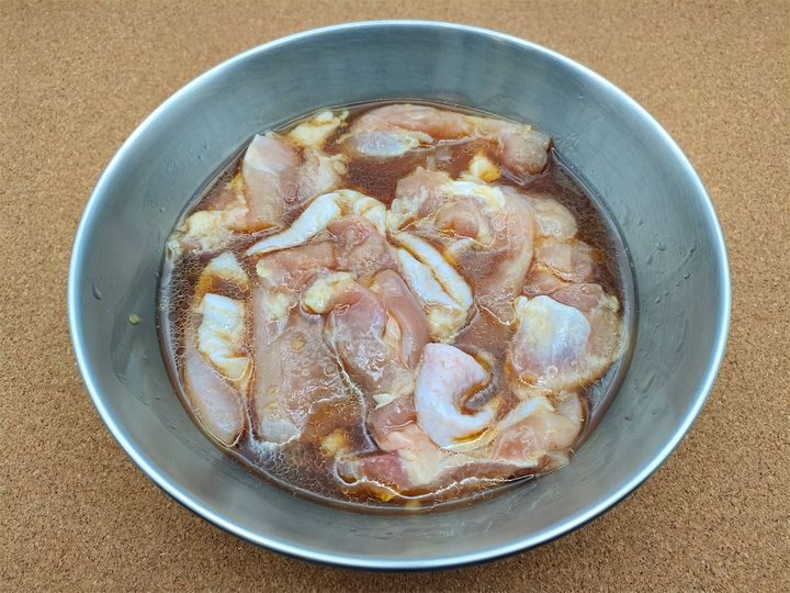 最初に水分を含ませる方法はもう唐揚げの常識といってもいいくらい有名になりましたが、このひと手間だけで驚くほどジューシーに仕上がります。これはブライニングといって、肉や魚を塩水につけることで水分を素材の中に入れ、熱を加えたときにパサパサになるのを防ぐ調理法です。