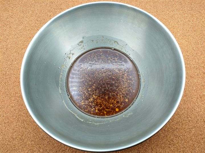 5.  鶏肉を取り出して水を切り、タレが入ったボウルに入れてよくもみこみ、ラップして15分漬けます。