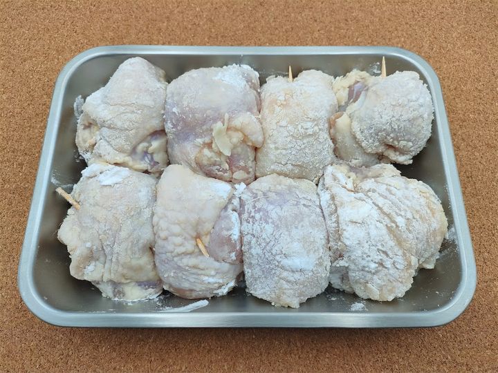 ※鶏肉2枚なので、8個できます。筋などは切り取っておくと食感がよくなります。