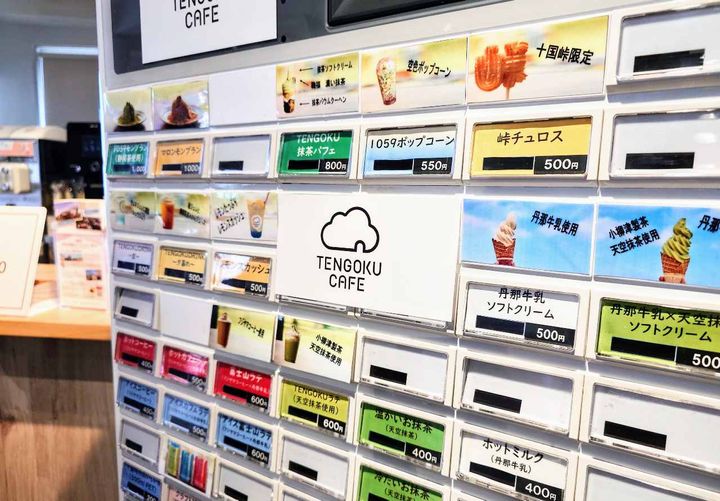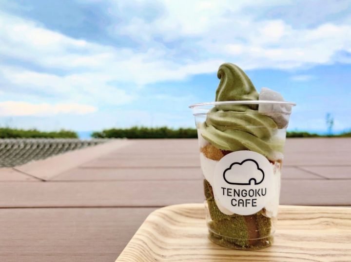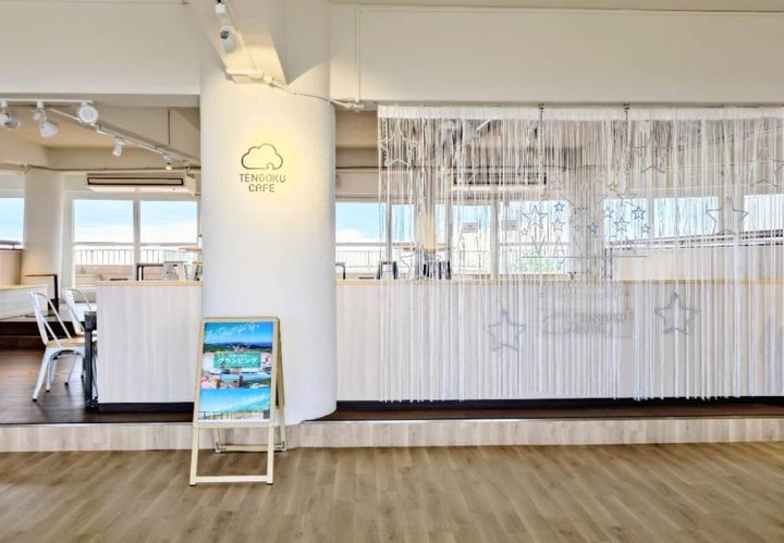 地産地消の食材を使ったスイーツやドリンクがそろう「TENGOKU CAFE(テンゴク カフェ)」は休憩にぴったり。まっしろで雲のようなカフェです(営業時間:9時30分〜16時)。