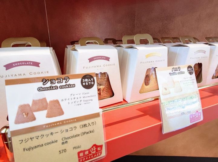 「フジヤマクッキー」(税込570円)は、ショコラ・ホワイトチョコ・抹茶・バニラのラインナップで単品販売していました。