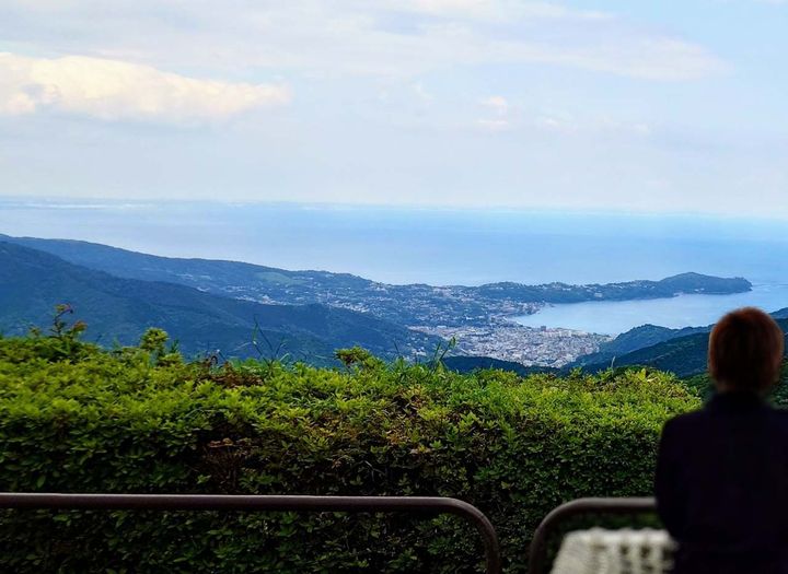 標高767mの山頂駅からは、眼下に駿河湾と山々が連なる絶景を。