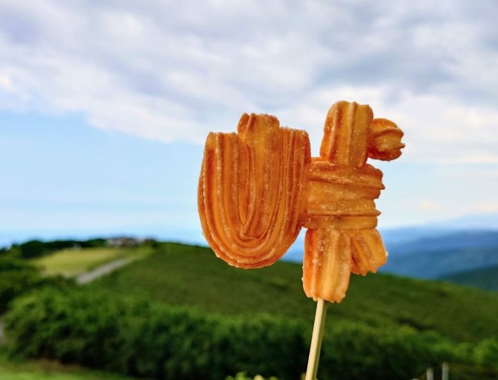こちらは人気の「峠チュロス」(税込500円)。上手いこと漢字の「峠」を形作って意外とずしっと重い! しかし食べたら、外側はカリッカリで、中はフワフワモッチモチ! 温かくて、ほんのり甘いお砂糖が浸透して疲れも吹っ飛びました。