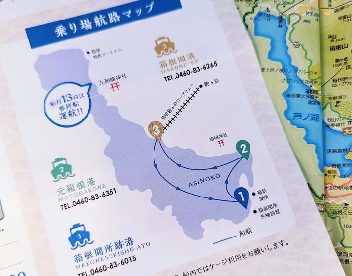 運航ルート:「箱根関所跡港~元箱根港~箱根園港~箱根関所跡港」各港で乗船下船可能
