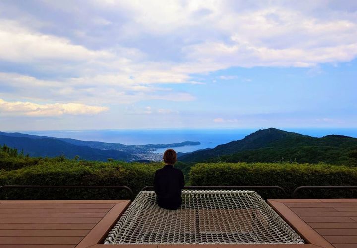 ちなみに、展望デッキから徒歩約5分の場所には「THE GLAMPING 箱根十国峠」があり、屋上展望デッキ付き、サウナ付き、トランポリン付き、ピザ窯付きなど7タイプの宿泊施設があります。宿泊客からは、朝日や夜景など刻々と変化する景色と非日常な焚火が特に印象的だったと好評。