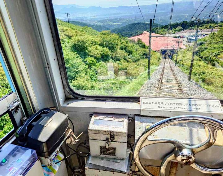 運転席には黒電話もあるレトロなケーブルカーで、どこか懐かしい気持ちになります。