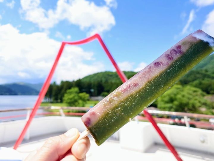 こちらは、溶けないアイスで話題のくずキャンディ「富士山くずキャンディ(抹茶・ラムネ)」(各税込680円)。最初はカチッと冷凍状態でしたが、10分ほどしたらちょうどよい食べ頃に。小豆と抹茶にほっこりして、シャリシャリとプルプル食感という新感覚を楽しみました!