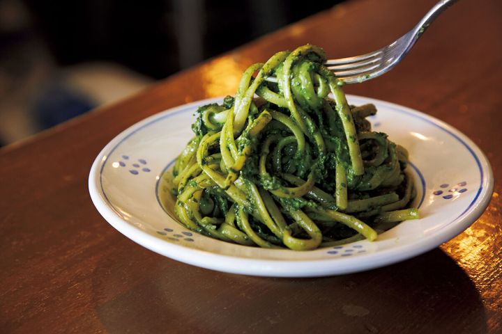 香り高いバジルソースを、目の前で豪快にすりおろしてくれる、『超すりたてジェノベーゼ』が大人気のイタリア料理店「スポルカチョーネ」。
