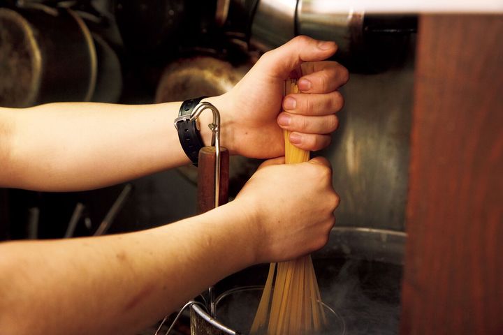 「とにかくする!疲れたら腕を替えて(笑)パスタがゆで上がるまでにしっかりと」
